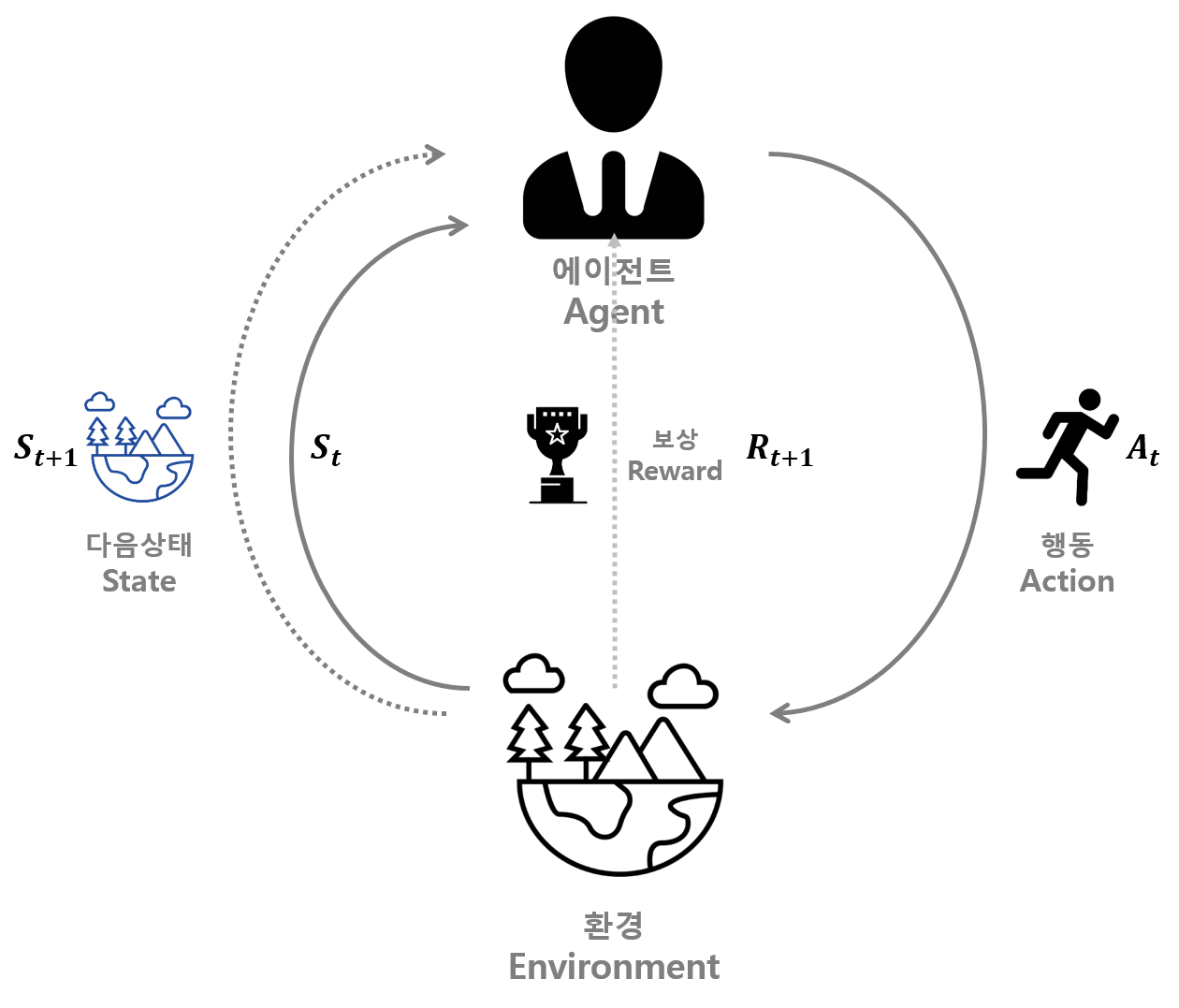 이번 포스팅에서는 강화학습의 골격을 잡아주는 Markov Decision Process (MDP)의 개요에 대해 알아보겠습니다. MDP의 가치함수 정의 및 최적 정책결정에 대해서는 다음 포스팅에서 자세히 다루겠습니다.